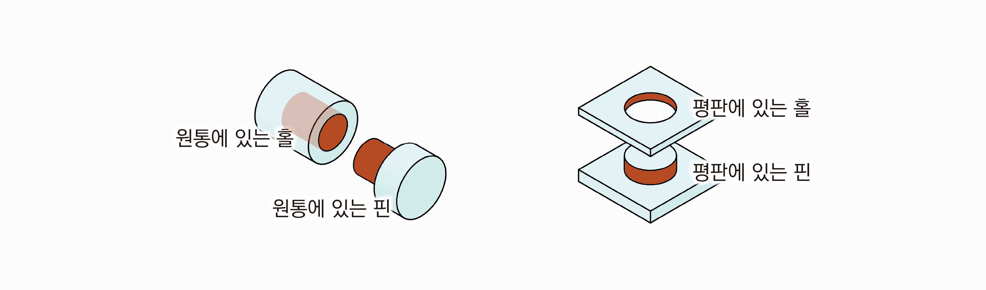 핀과 홀은 원통에 있을 수도 있고, 평판에 있을 수도 있다. 내부에 재료가 있으면 핀이고, 없으면 홀이다. 그렇다면, 핀과 홀은 앞서 설명한 서피스와 다를까?