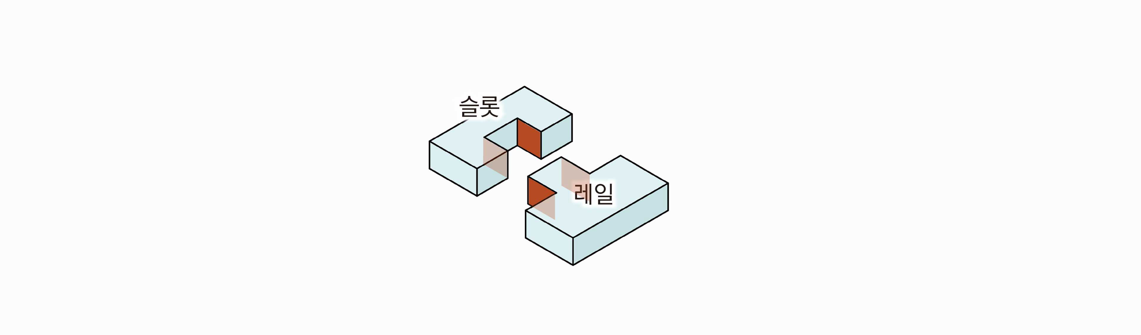 이제 슬롯을 살펴보자. ASME에서는 슬롯만을 예로 들었지만, 슬롯과 레일은 홀과 핀의 관계와 유사하다. 슬롯은 홀과 같이 재료를 제거하고, 레일은 핀과 같이 재료를 더한다. 슬롯과 레일도 홀과 핀처럼 서피스이기도 하다. 다만 홀이나 핀은 원통 서피스 1개로 구성되지만, 슬롯과 레일은 평면 서피스 2개가 한 쌍으로 구성된다.