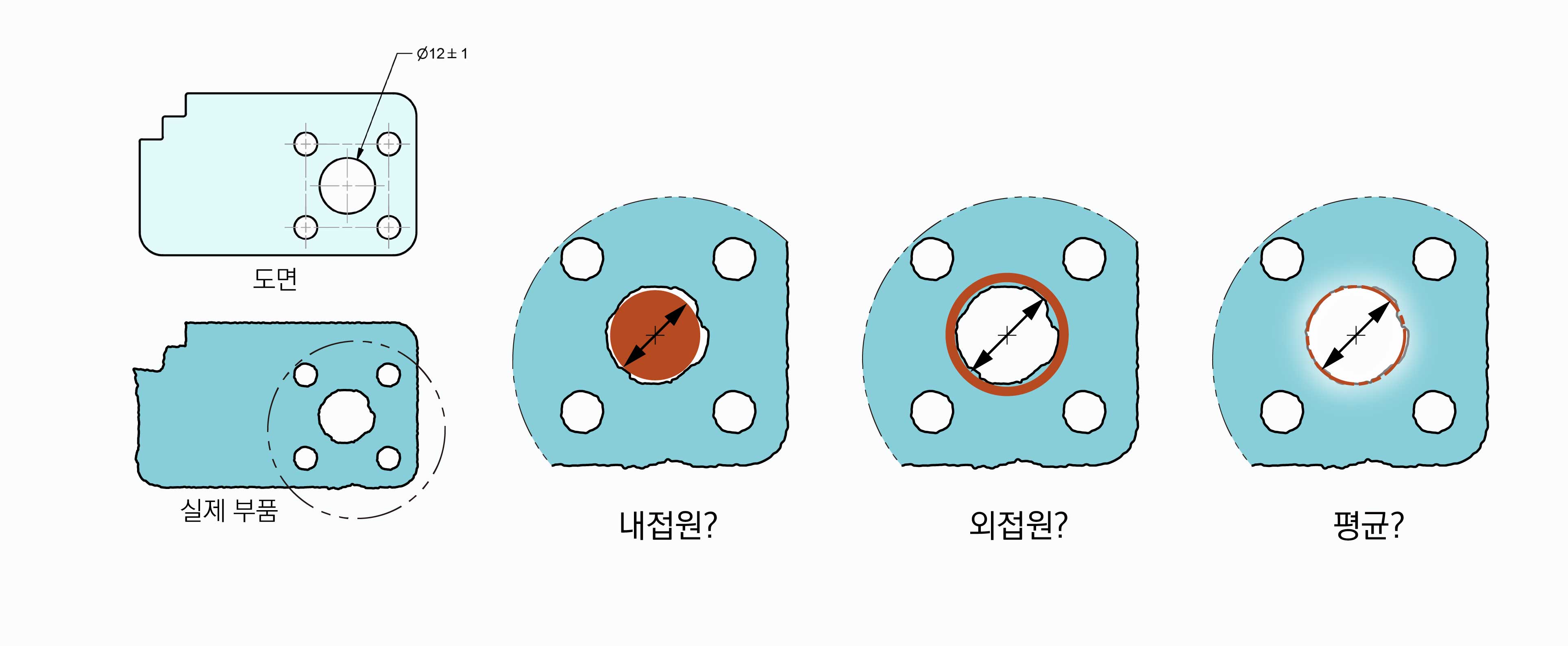 모든 치수가 공차안에 있어서 도면의 요구사항을 만족하여도 기하학적으로 불완전한 형상 때문에 파트를 사용하지 못할 수 있다.