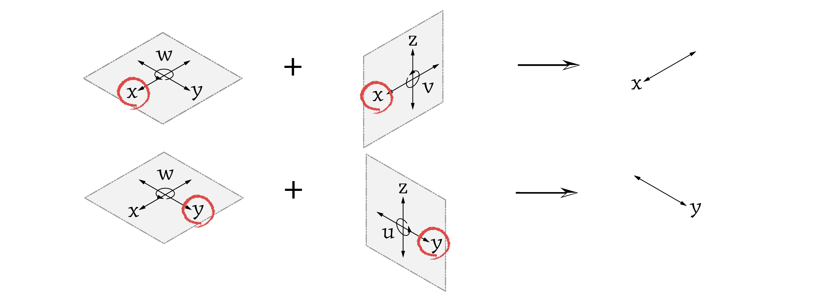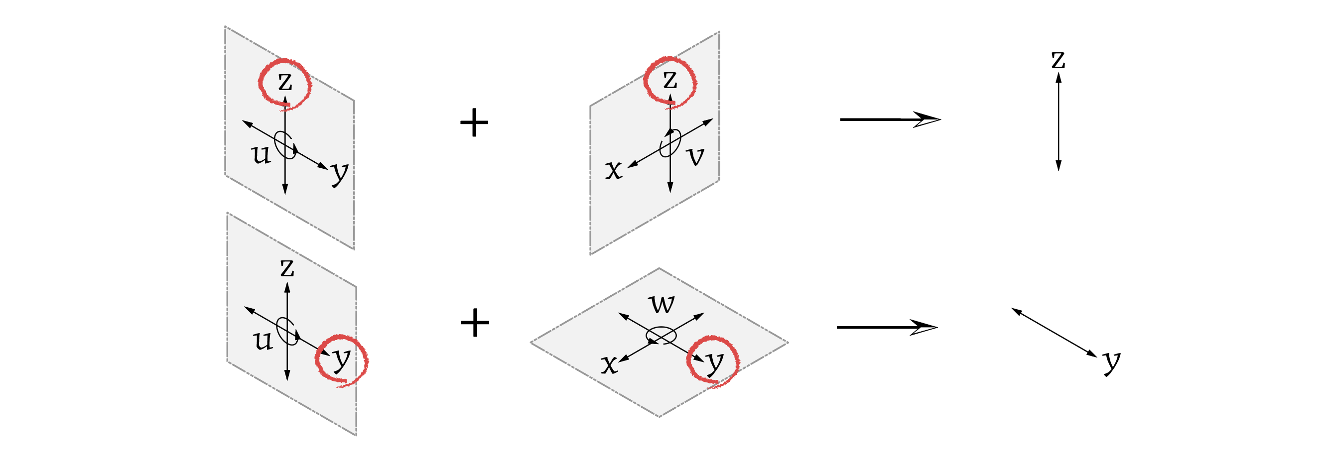 하지만 공간상에 놓여진 데이텀 점은 여전히 u방향, v방향, w방향으로 회전할 수 있다. 다시 말해 데이텀 점의 회전자유도는 제한되지 않는다.