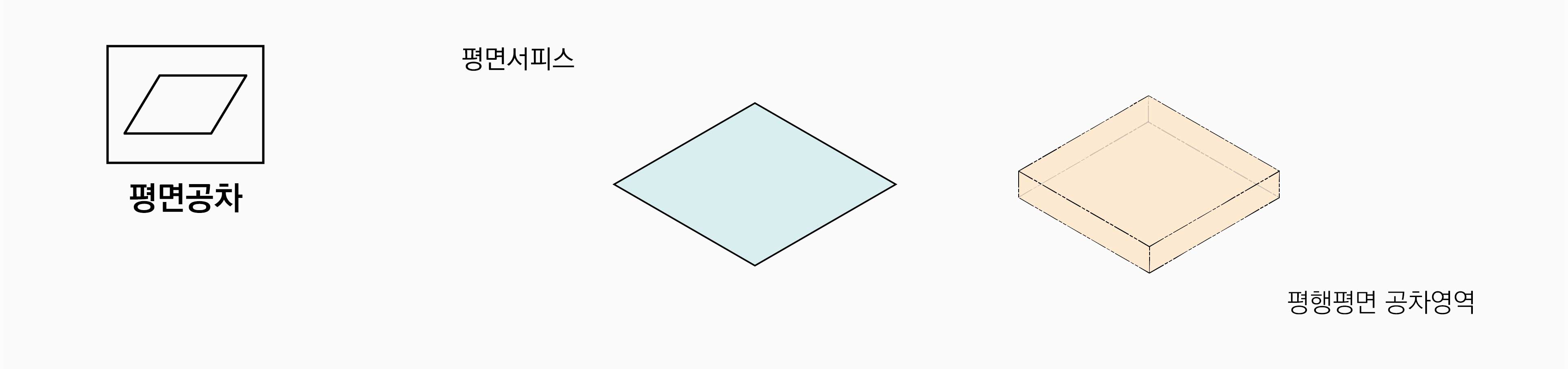 평행공차는 평면서피스에도 적용할 수 있고, 원통서피스에도 적용할 수 있다. 평면서피스에 적용된 경우를 살펴보면, 평행공차는 기준면에 대해 평행한 공차영역을 생성한다. 평행공차는 경사공차의 베이직 각도가 평행인 특별한 경우이다.