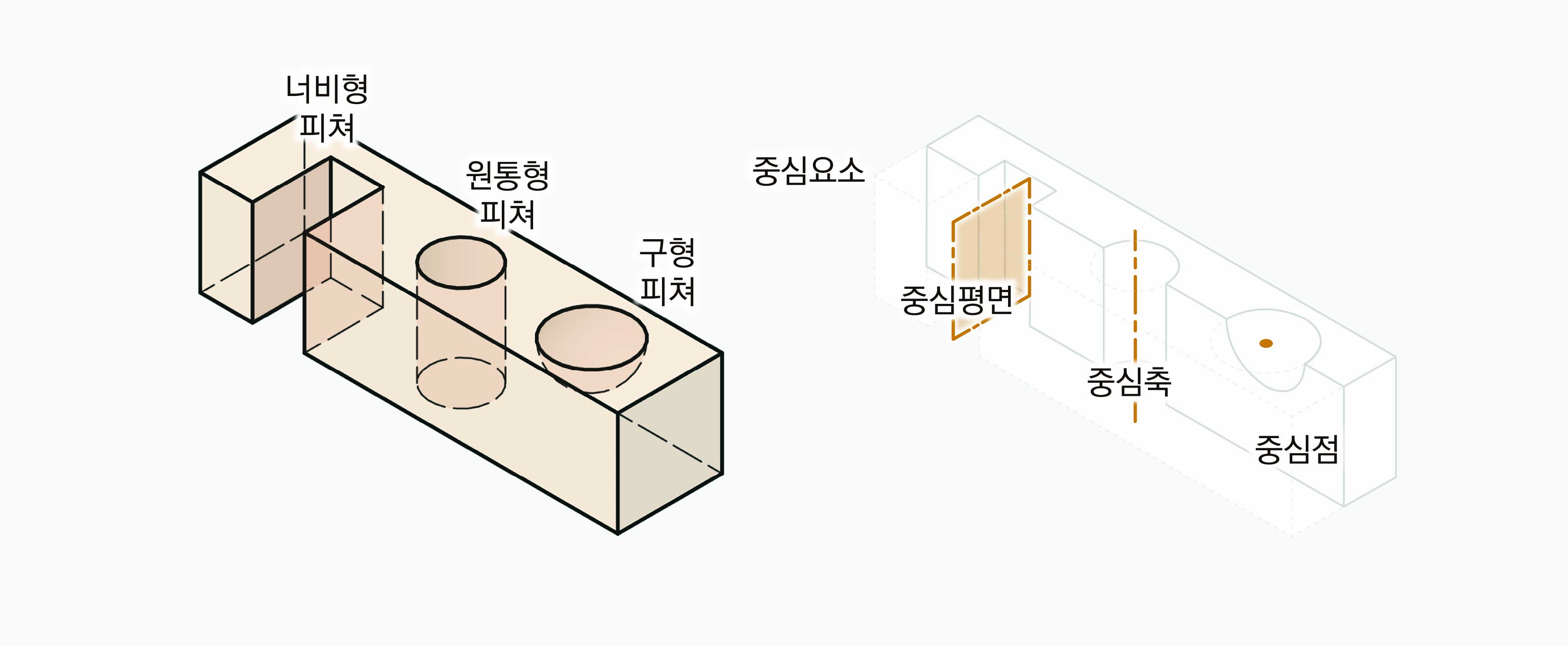 - 중심평면: 너비형 피쳐인 평행한 두 면 사이의 중심을 지나는 평면.