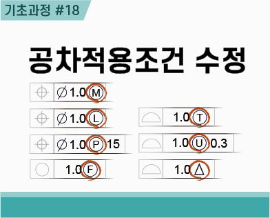 기하공차의 공차영역은 모디파이어를 사용하여 더 구체적으로 수정하여 정의할 수 있다. 이를 위한 모디파이어는 7개가 있다.