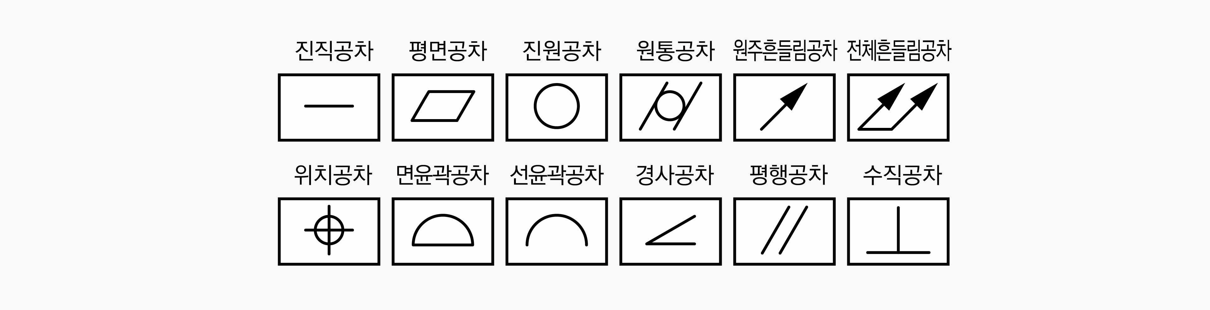 기하공차 종류를 나타내는 심볼은 목표로 하는 기하학적 상태를 구체적이고 직관적으로 표현한다.