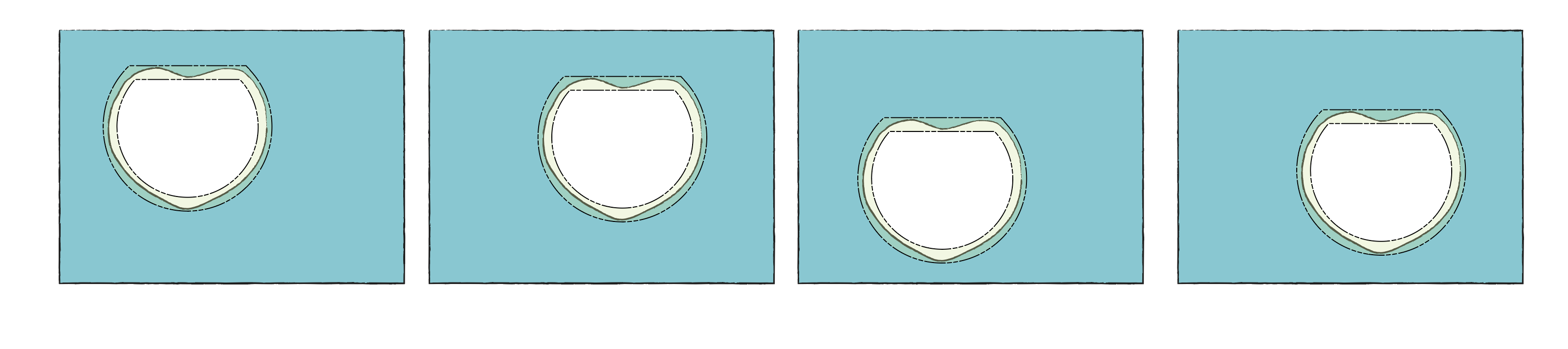트루 프로파일의 위치가 고정되지 않아 트루프로파일을 기준으로 하는 공차영역의 위치도 고정되지 않는다. 따라서 공차영역을 움직일 수 있기 때문에 공차영역을 움직여서 피쳐의 서피스가 공차영역안에만 있다면, 정의된 윤곽공차를 만족하는 것이 된다.