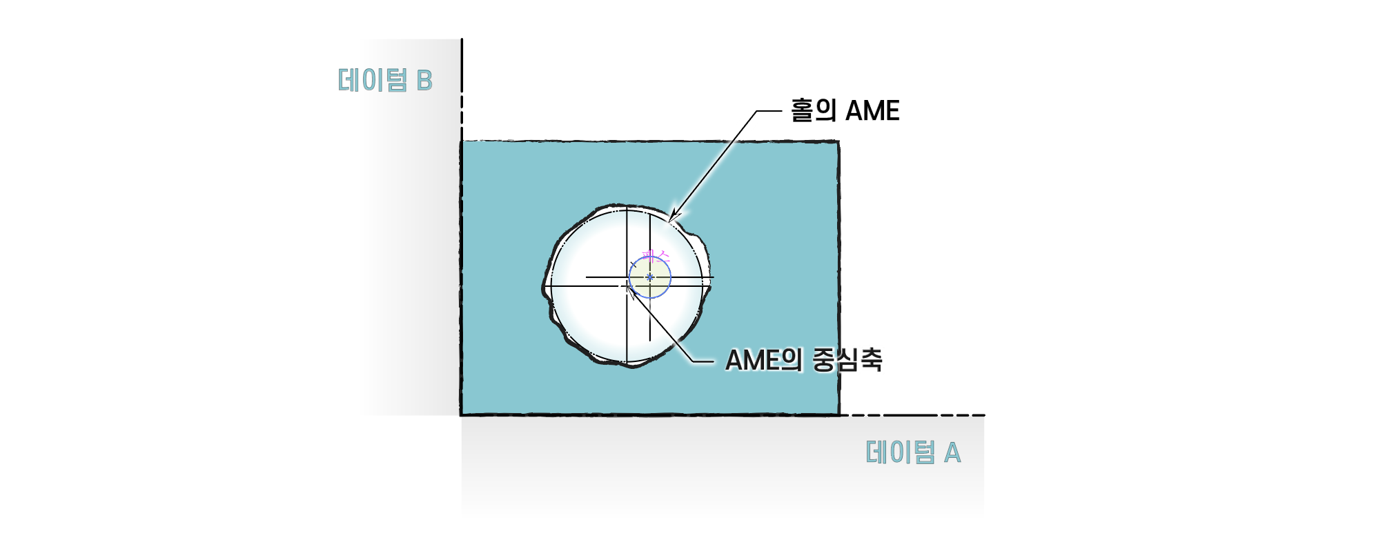 도면은 홀에 대해 두 가지 요구사항을 정의하고 있다. 사이즈 요구사항과 위치 요구사항이다. 홀은 이 두 가지 요구사항을 모두 만족해야 하다고, 둘 중 하나라도 만족하지 못한다면 홀은 필요한 요구사항을 만족하지 않는 것이다.