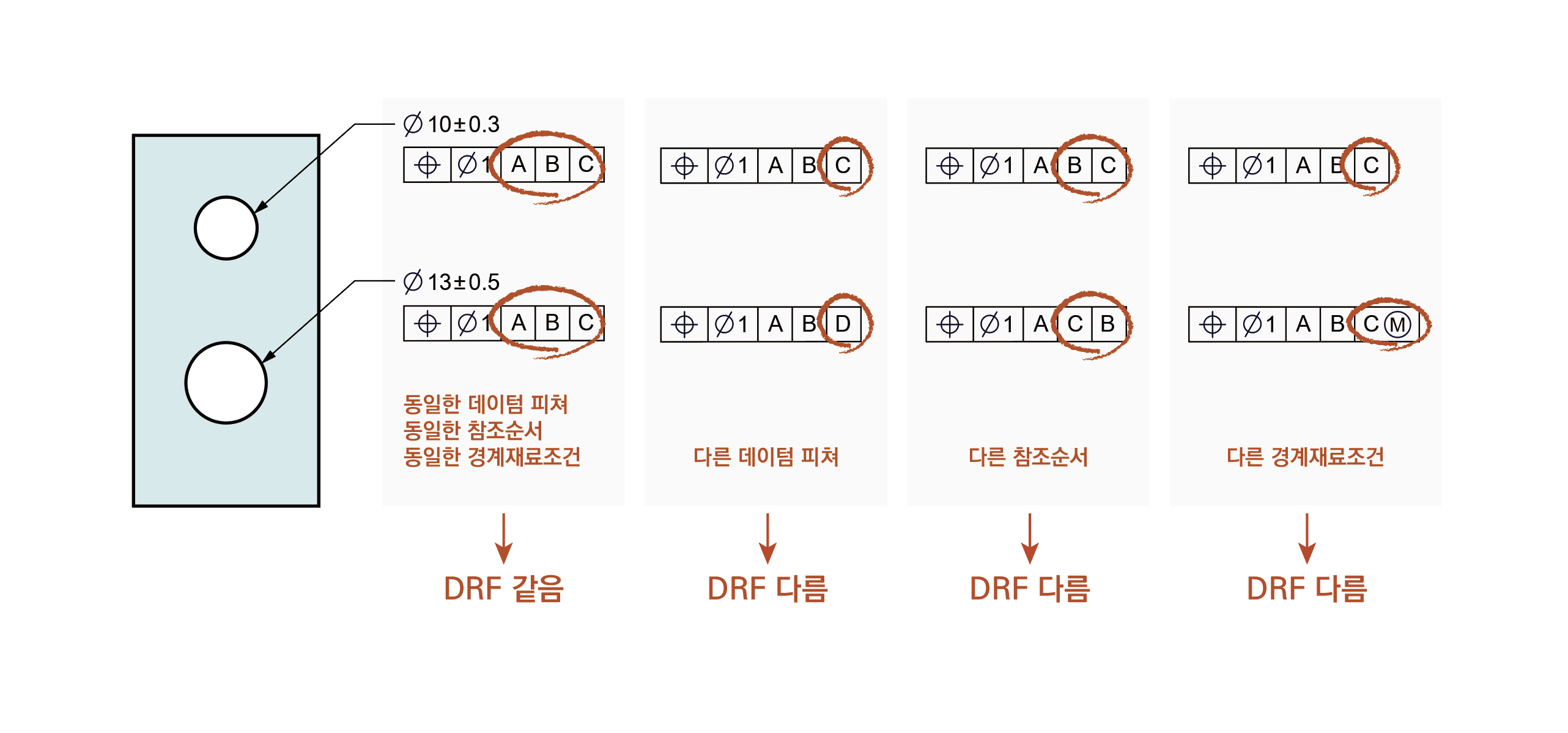 동일한 데이텀 피쳐, 참조순서, 경계재료조건 → DRF 같음