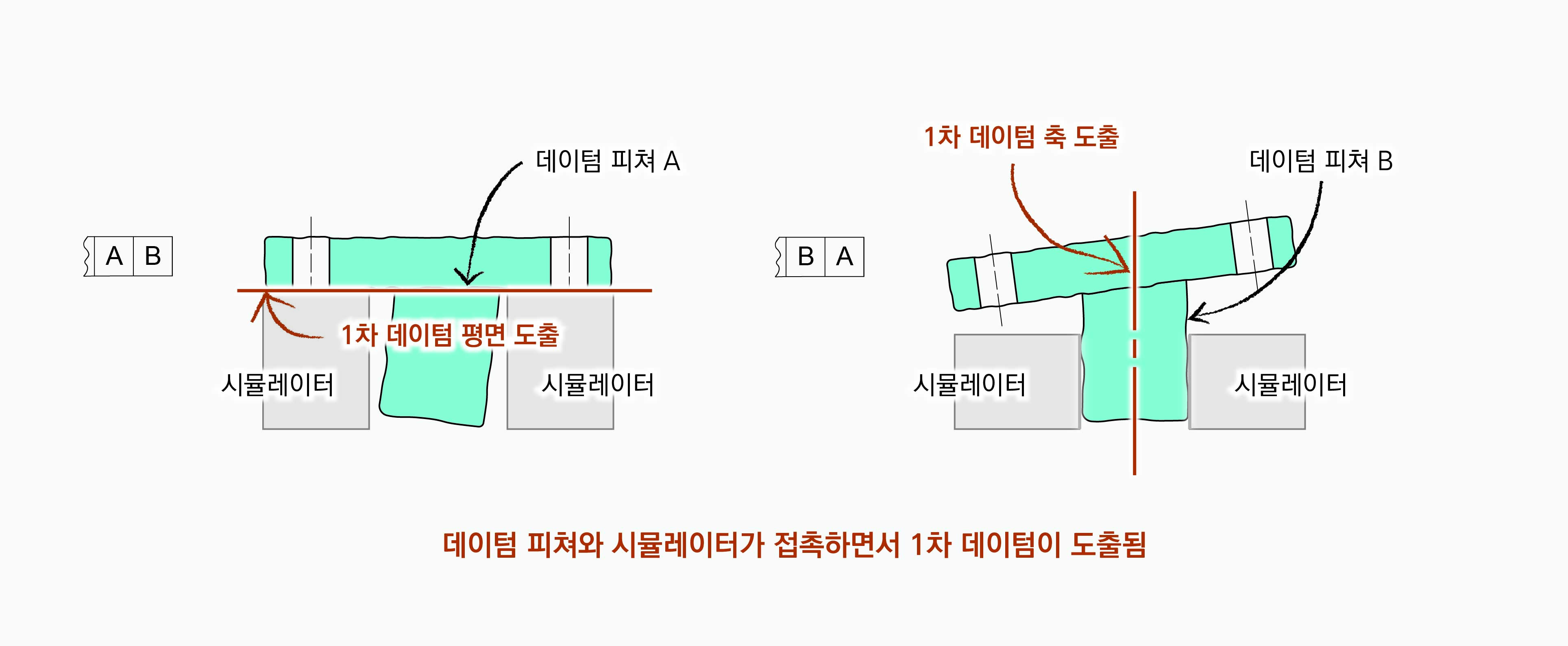 2차 데이텀은 1차 데이텀에 의해 파트의 자세가 정해진 상태에서 2차 데이텀 피쳐와 시뮬레이터가 접촉해야 한다.