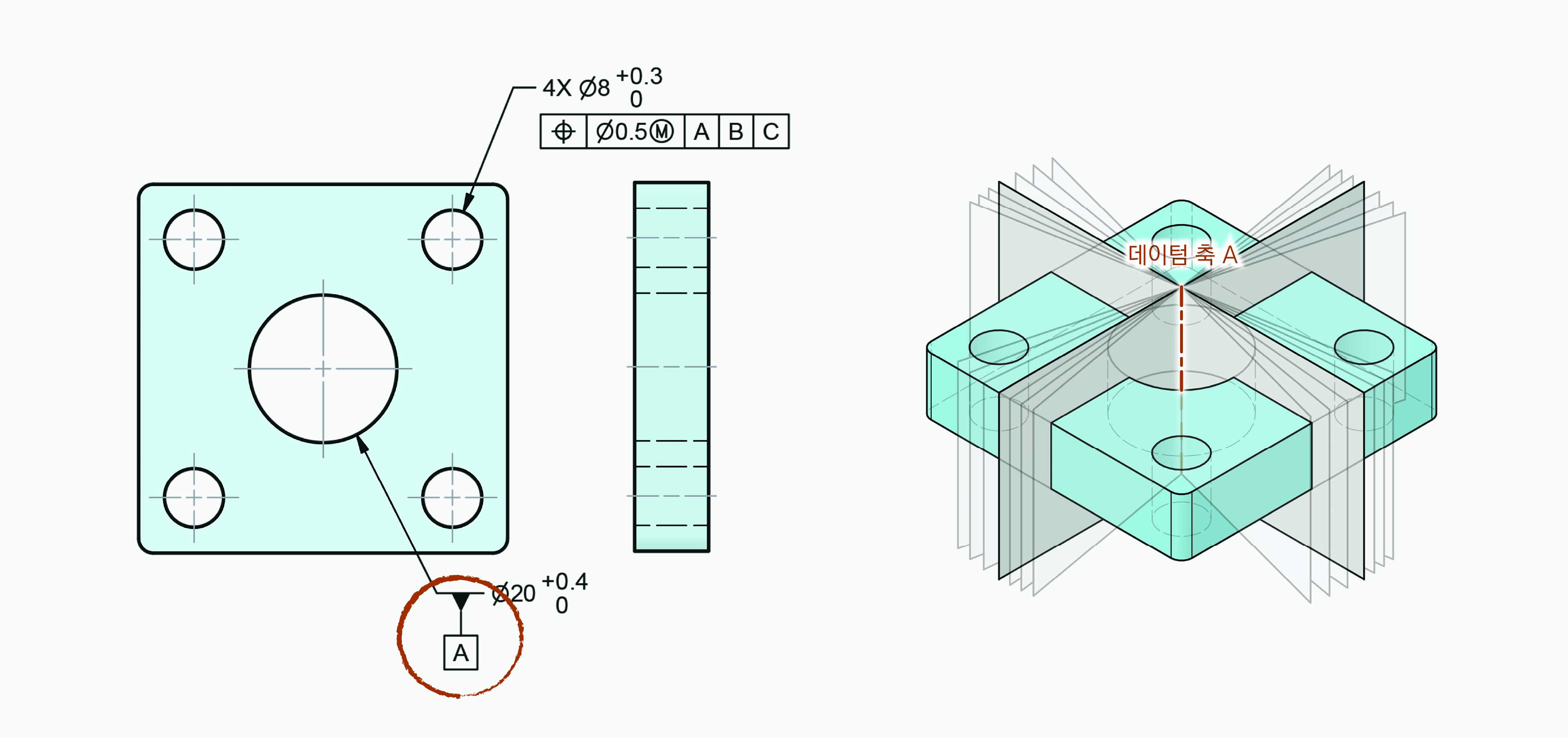 다음은 원통 사이즈 피쳐를 1차 데이텀 피쳐로 사용하는 경우를 살펴보자.