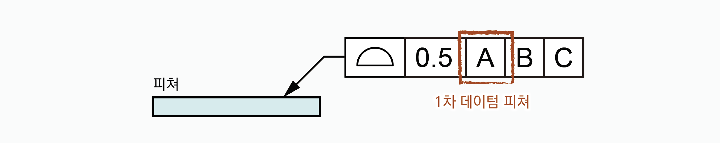 데이텀 피쳐는 물리적으로 실제로 존재하며 형상이 불완전하다. 반면 데이텀은 이러한 불완전한 데이텀 피쳐에서 도출된 것으로 완벽한 점, 선(축), 면(평면)이다. 또한 FCF에서 데이텀 피쳐를 참조하면 참조한 데이텀 피쳐에서 데이텀을 도출하고, 그 데이텀으로 데이텀으로 DRF를 구축한다. 데이텀 피쳐는 1개에서 3개까지 참조할 수 있다.