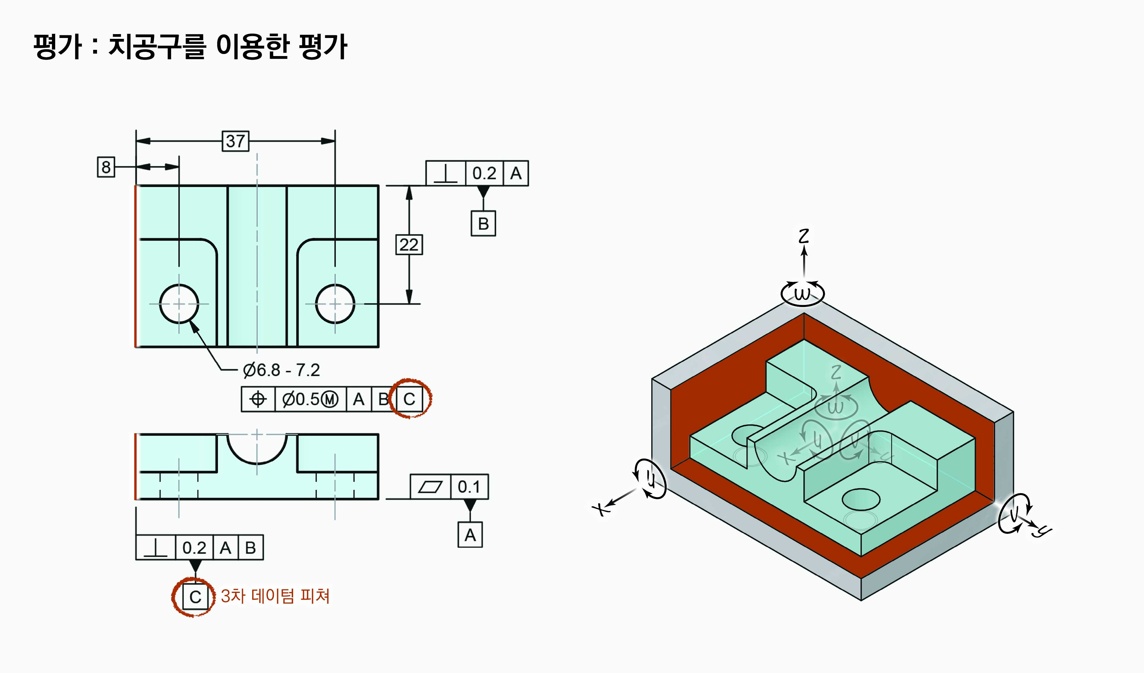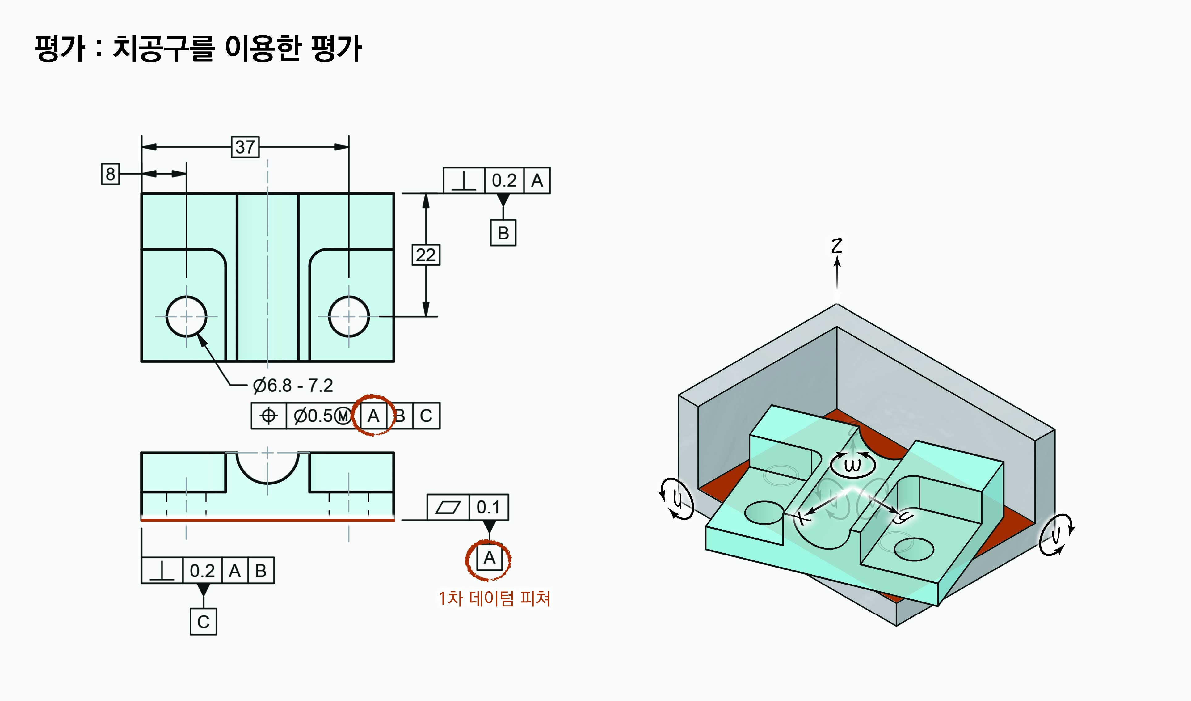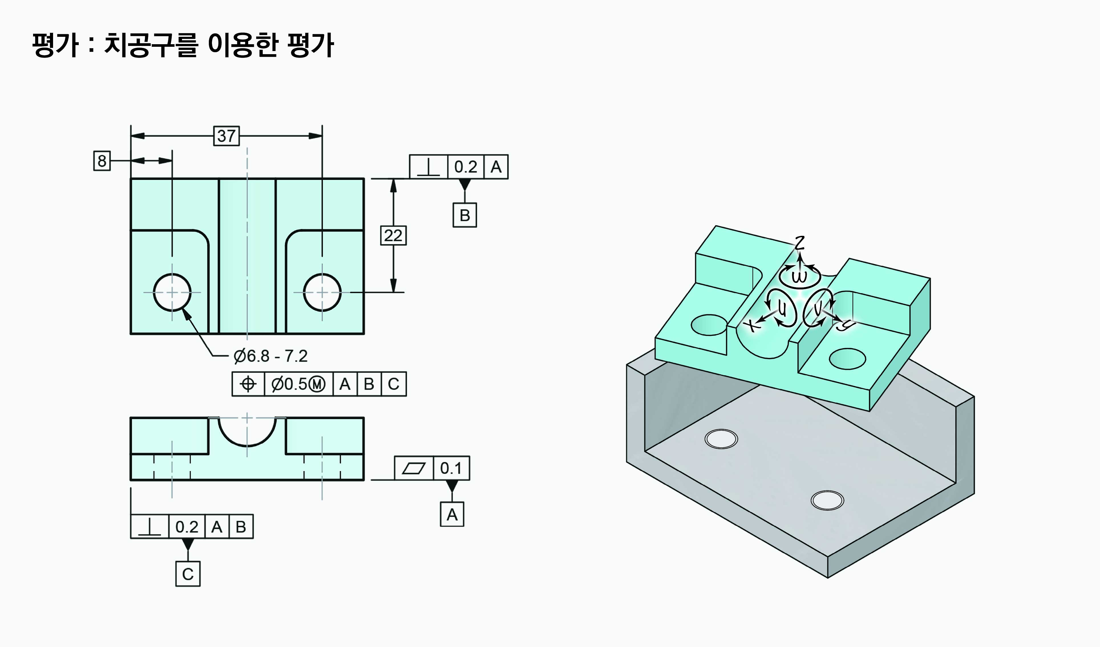 7) 평가 : 공차영역의 자세 및 위치, 자유도