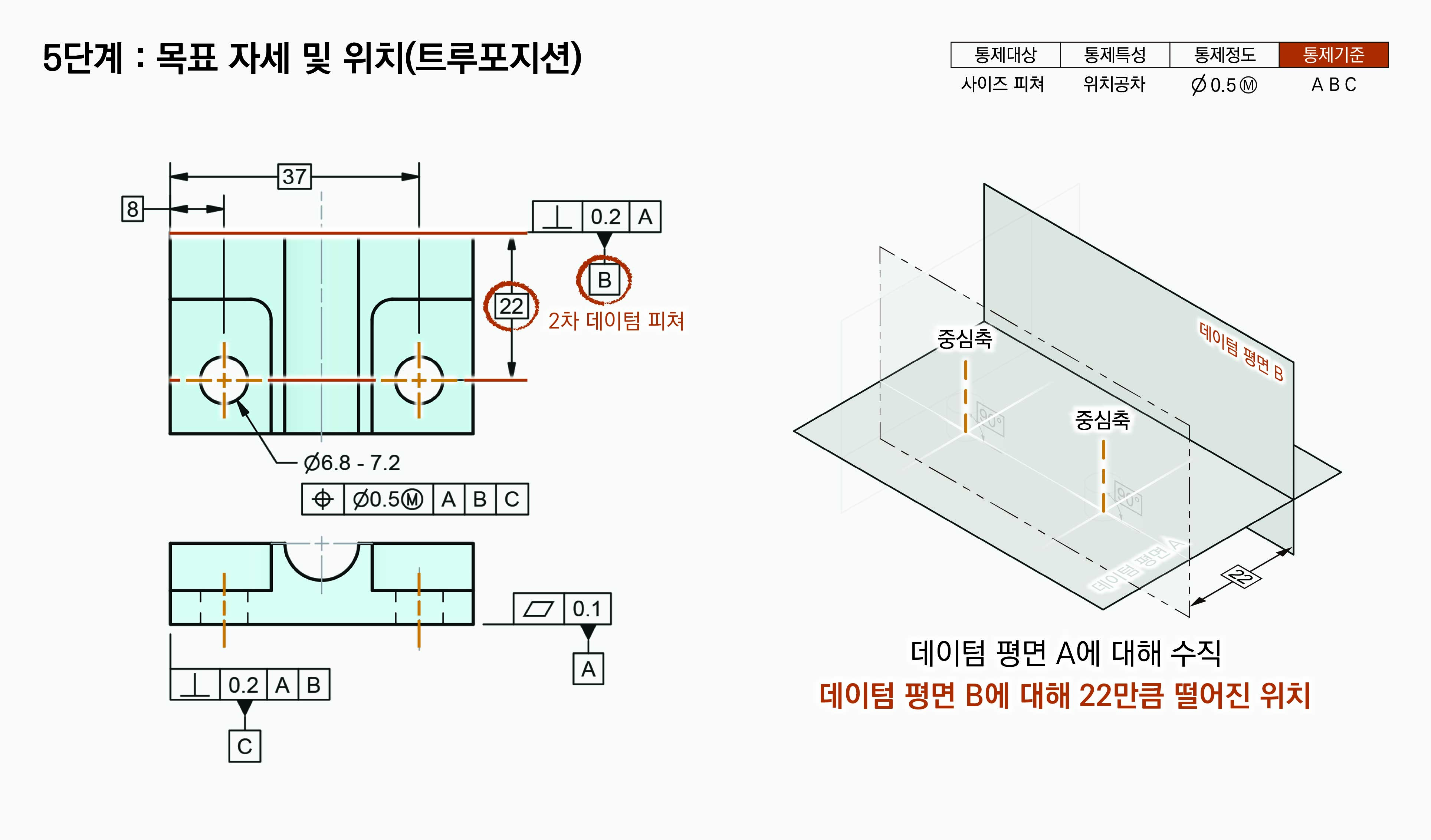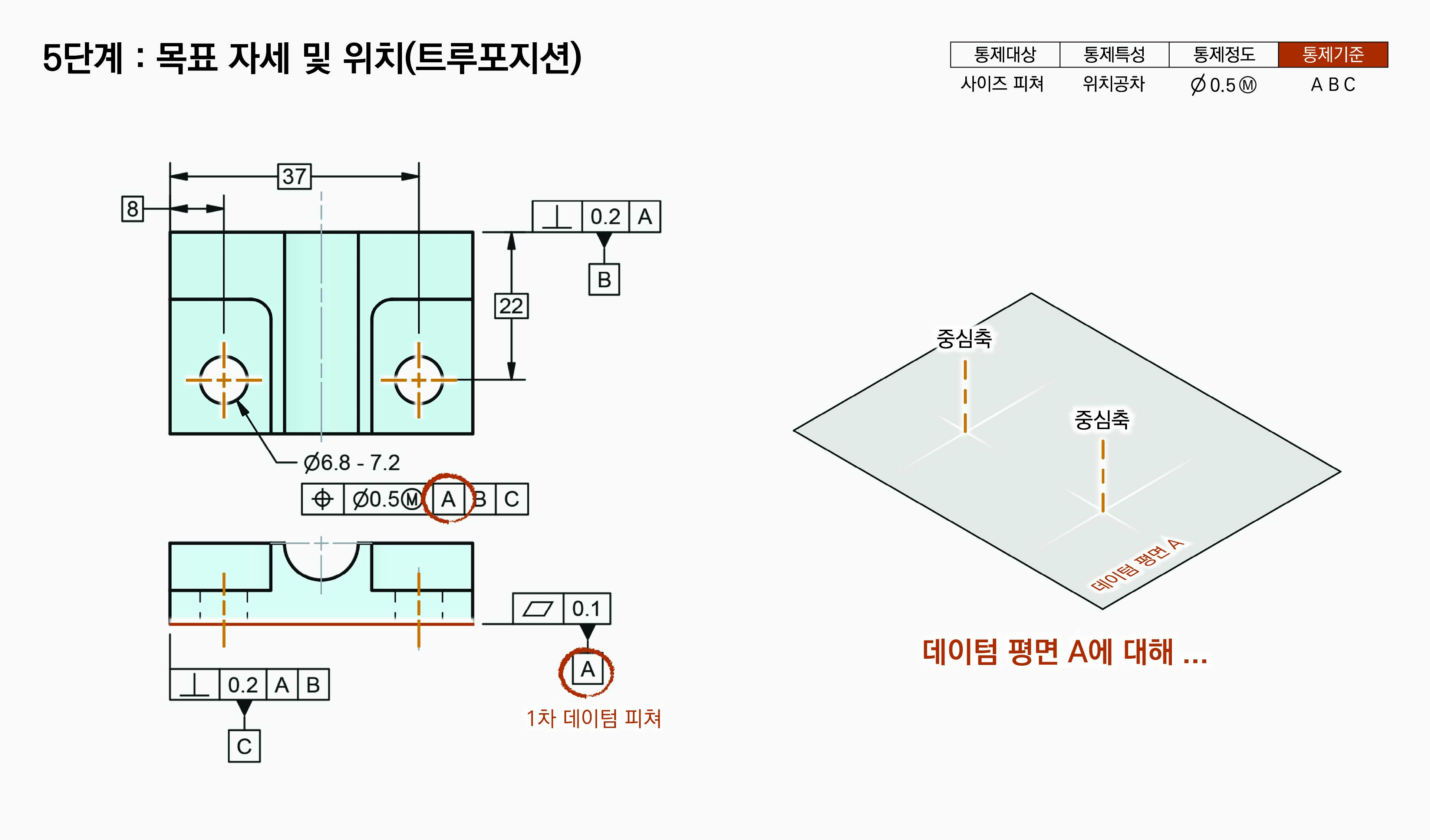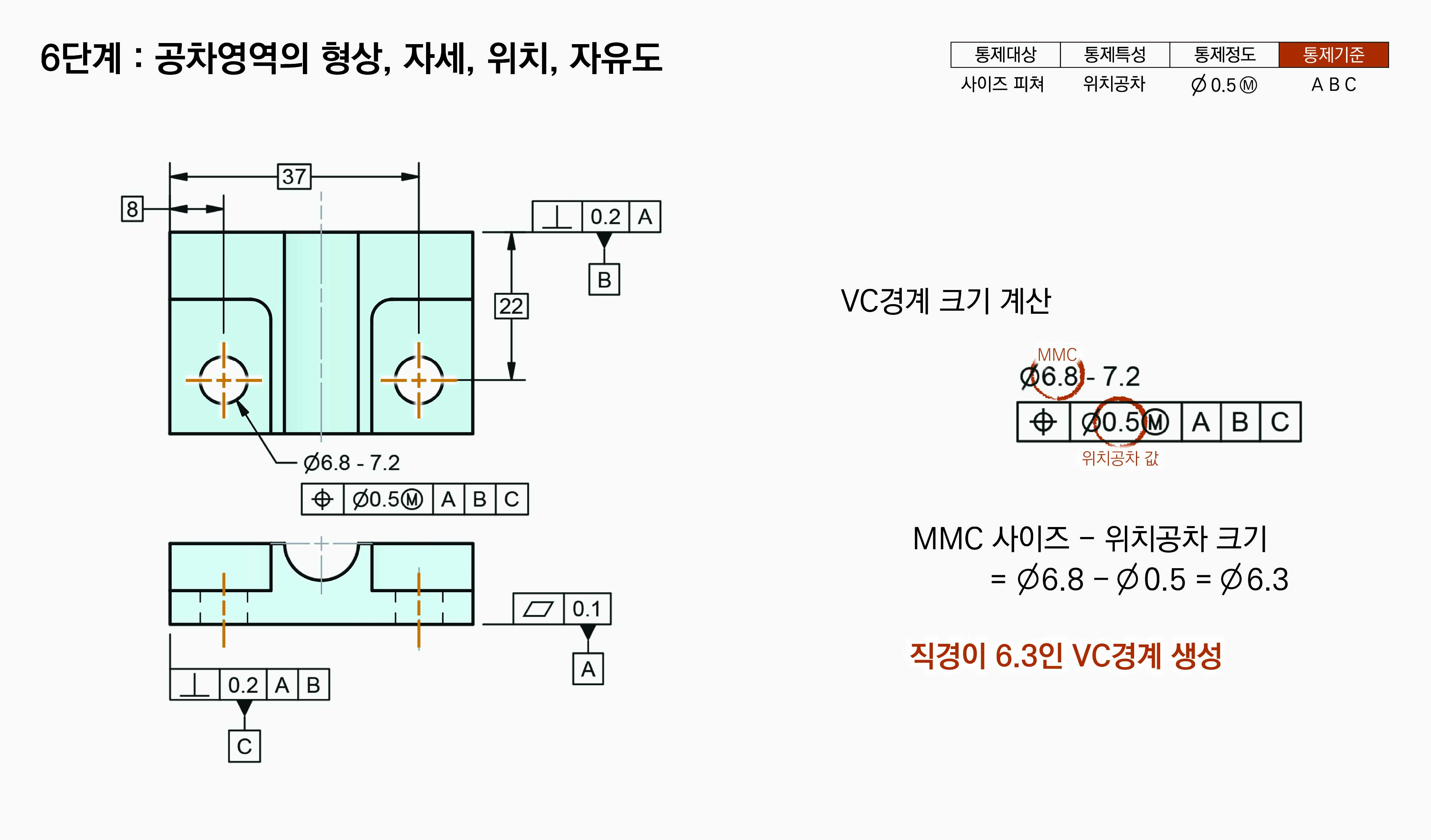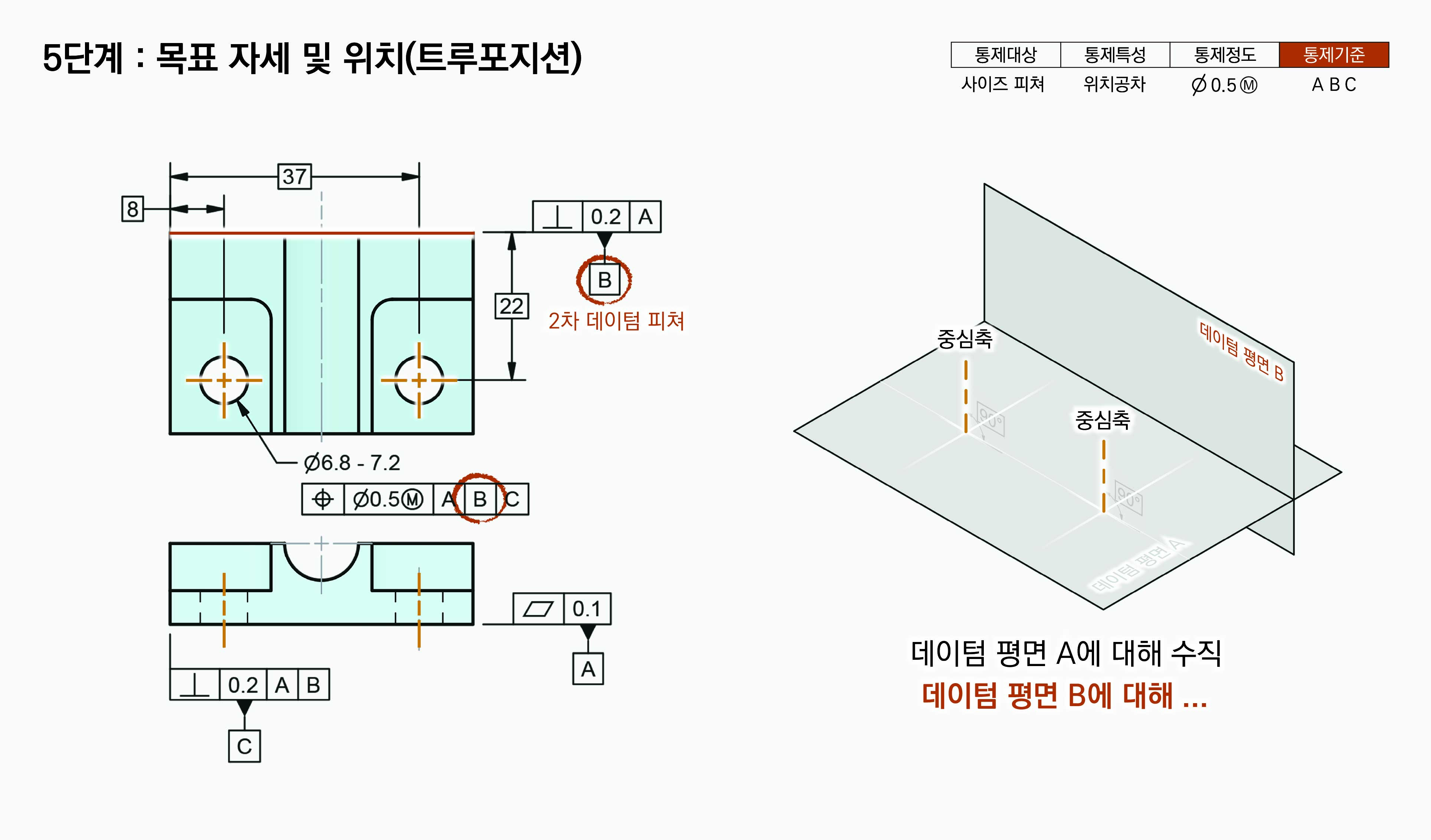 6) 통제기준 : 공차영역의 자세 및 위치, 자유도