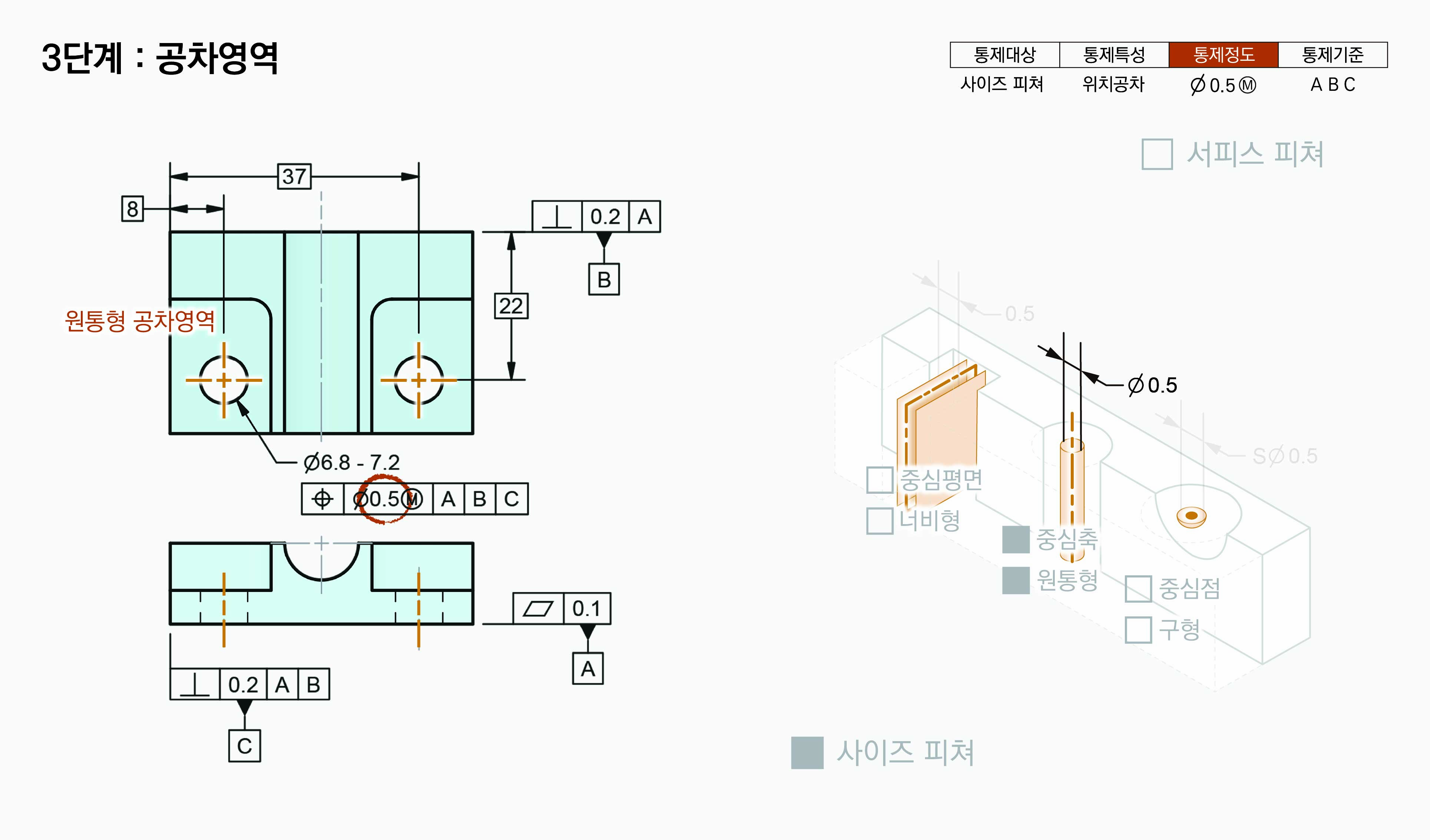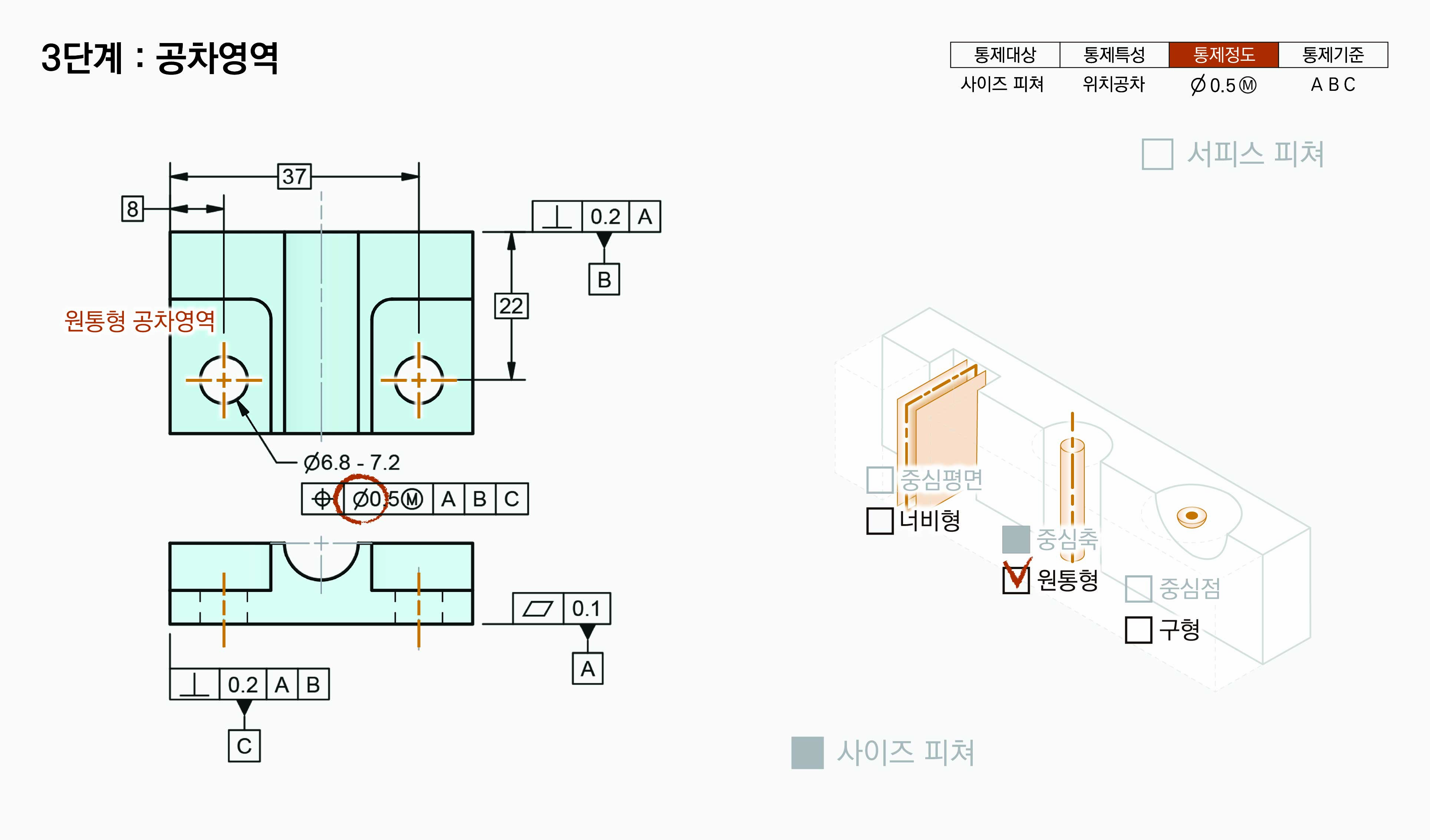 3) 통제정도 : 공차영역의 형상과 사이즈